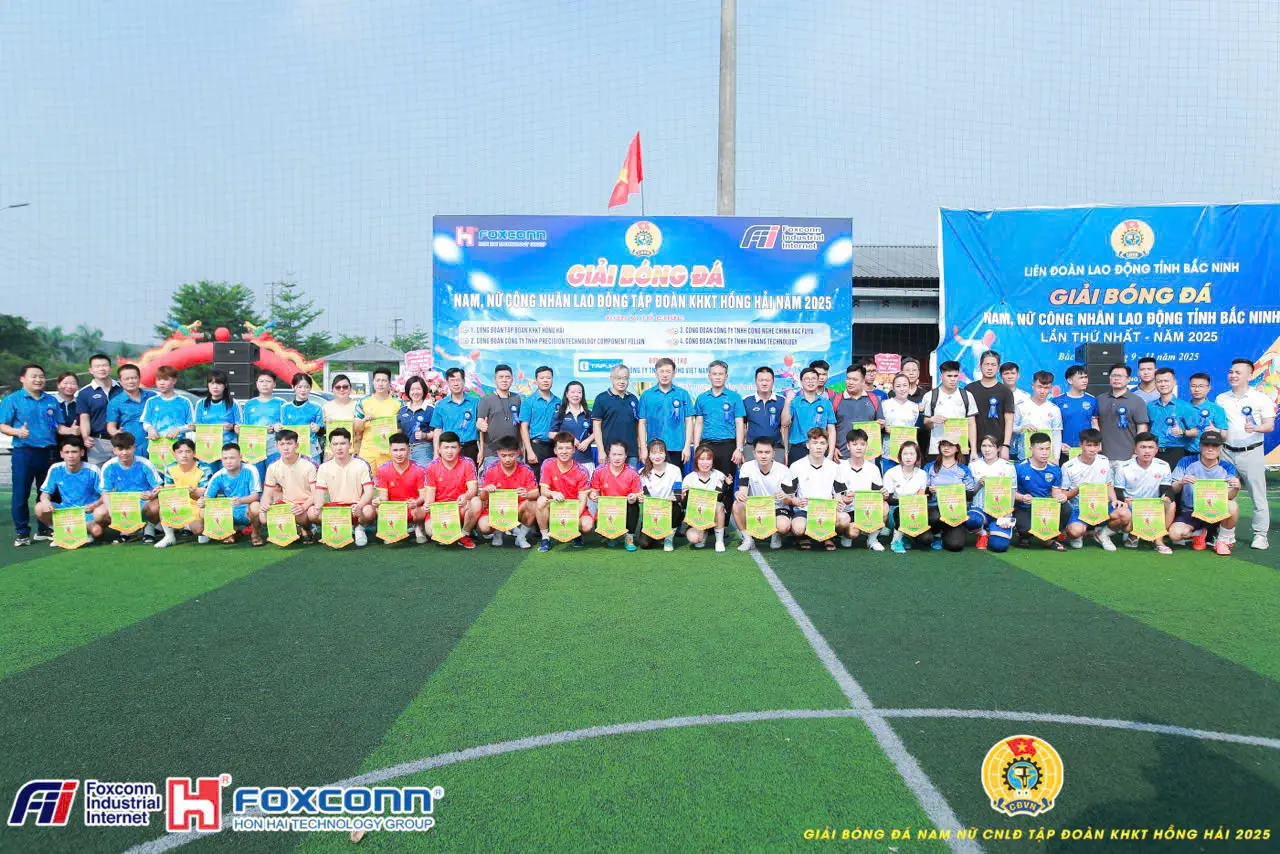 Ngày 21/9/2025, tại khu công nghiệp Bắc Giang, Tập đoàn KHKT Hồng Hải (Foxconn Việt Nam) long trọng khai mạc Giải bóng đá nam – nữ công nhân lao động năm 2025. Đây là sự kiện thể thao thường niên quy mô lớn, quy tụ hơn 600 cầu thủ từ 39 đội bóng, đại diện cho tinh thần đoàn kết, sức trẻ và niềm đam mê thể thao của hơn 75.000 công nhân lao động trong toàn tập đoàn.