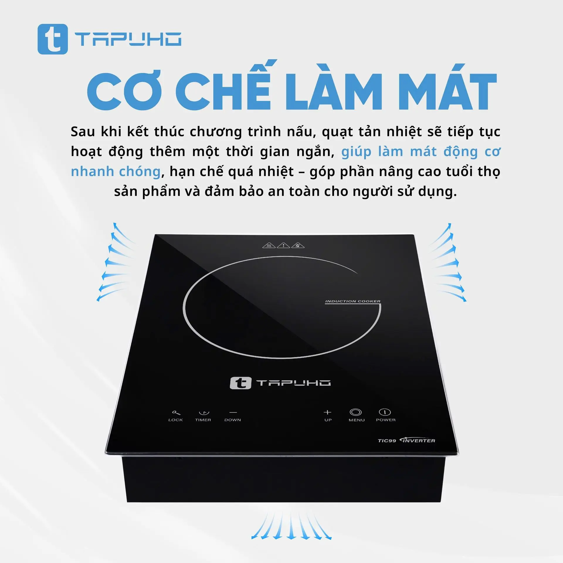 Không chỉ mạnh mẽ và ổn định trong quá trình nấu, TAPUHO TIC99 còn được trang bị hệ thống làm mát và tản nhiệt thông minh: