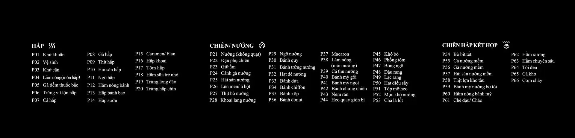 Hấp – Chiên không dầu – Chiên hấp kết hợp – Hầm – Nấu chậm, cùng hơn 80 chương trình cài sẵn.