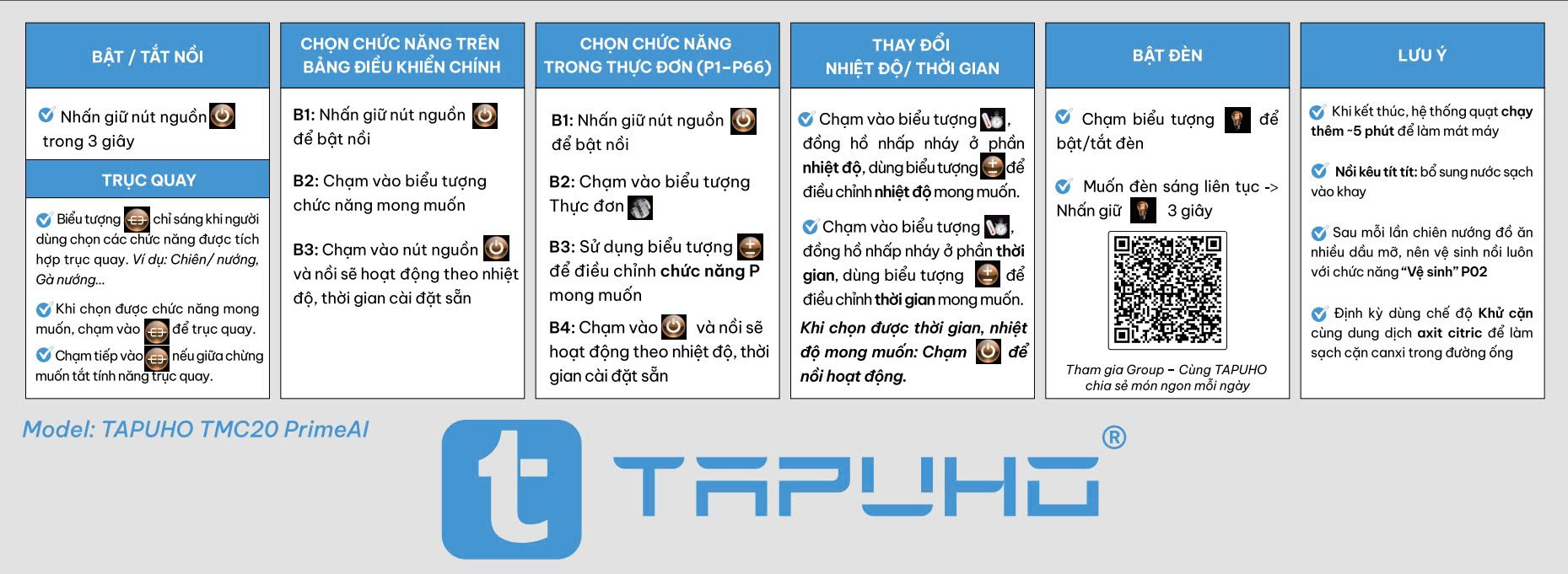 Sự kết hợp hoàn hảo giữa thiết kế – công nghệ – an toàn – tiện ích, TAPUHO TMC20 PrimeAI xứng đáng trở thành thiết bị nấu ăn đa năng đáng sở hữu nhất năm 2025, mang đến bữa cơm ngon – sạch – chuẩn vị cho mọi gia đình Việt.