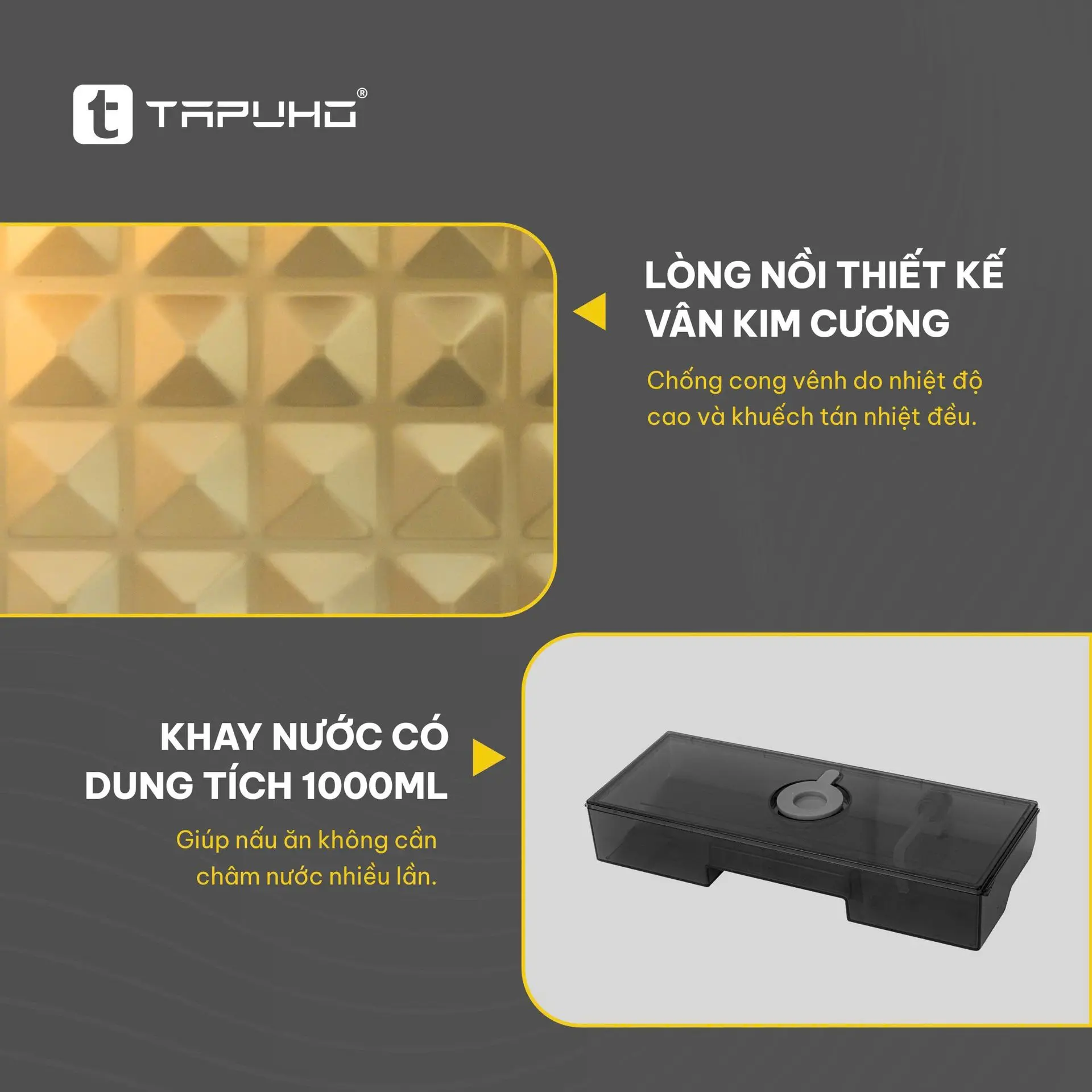 TAPUHO còn trang bị “hướng dẫn nhanh” dán ngay trên chốc nồi – tấm dán nhỏ nhưng cực hữu ích, giúp người dùng mới có thể nấu ngay mà không cần mở sách hướng dẫn.