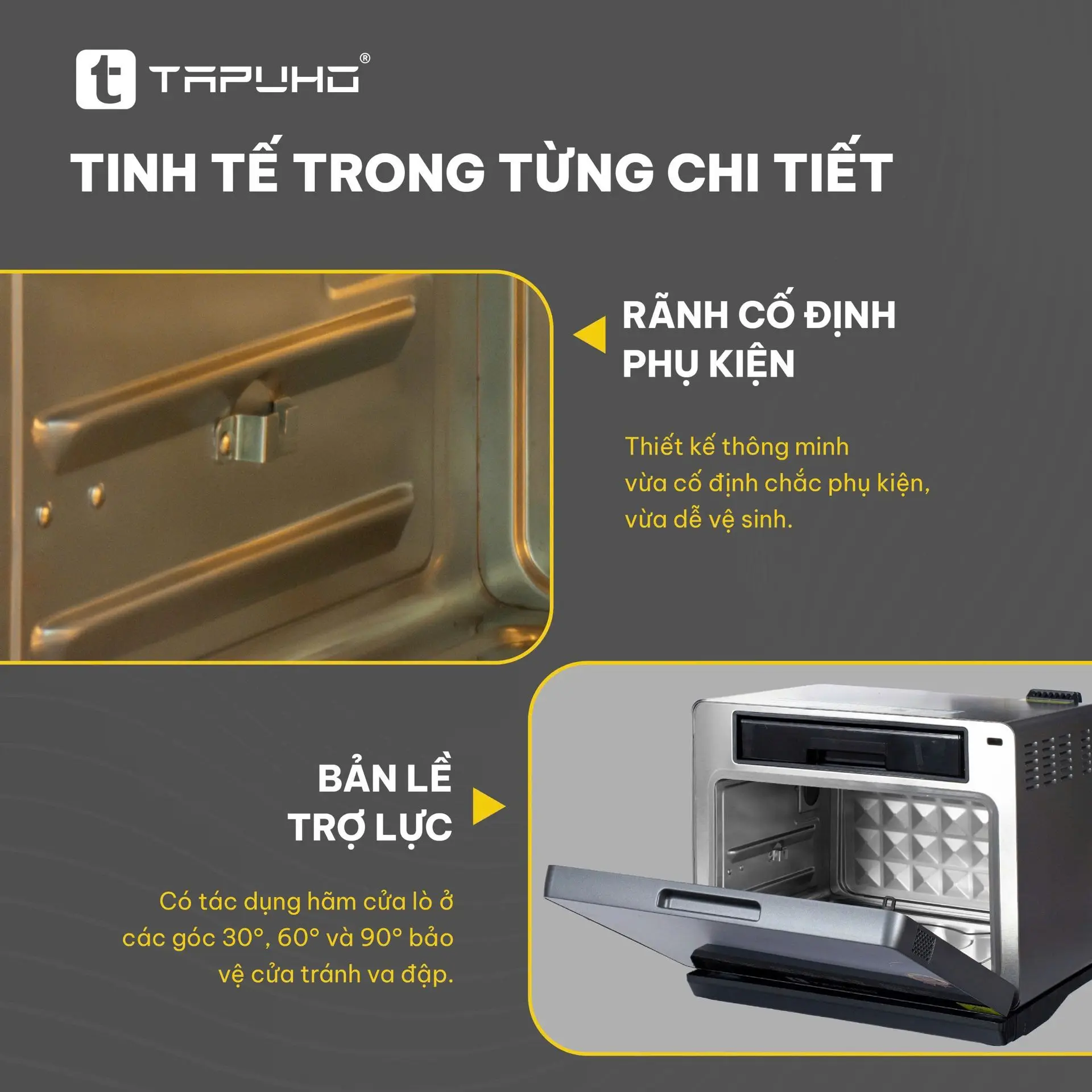 Mỗi chi tiết trong TAPUHO TMC20 PrimeAI đều được tính toán tỉ mỉ – vừa an toàn, bền bỉ, vừa mang đến trải nghiệm nấu ăn yên tâm và tiện nghi nhất cho người dùng Việt.