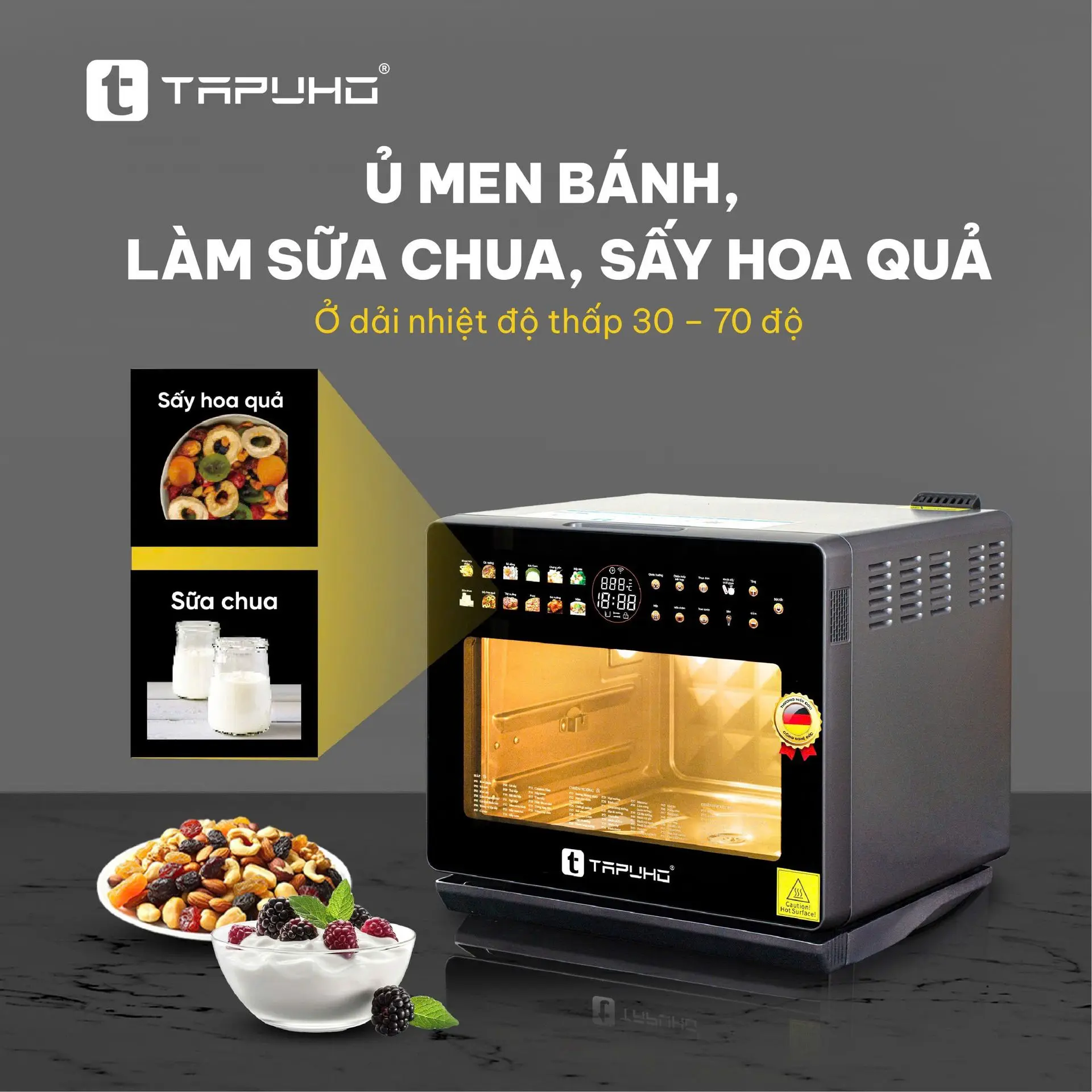 Ủ MEN BÁNH, LÀM SỮA CHUA, SẤY TRÁI CÂY – DỄ DÀNG Ở DẢI NHIỆT THẤP 30–70°C