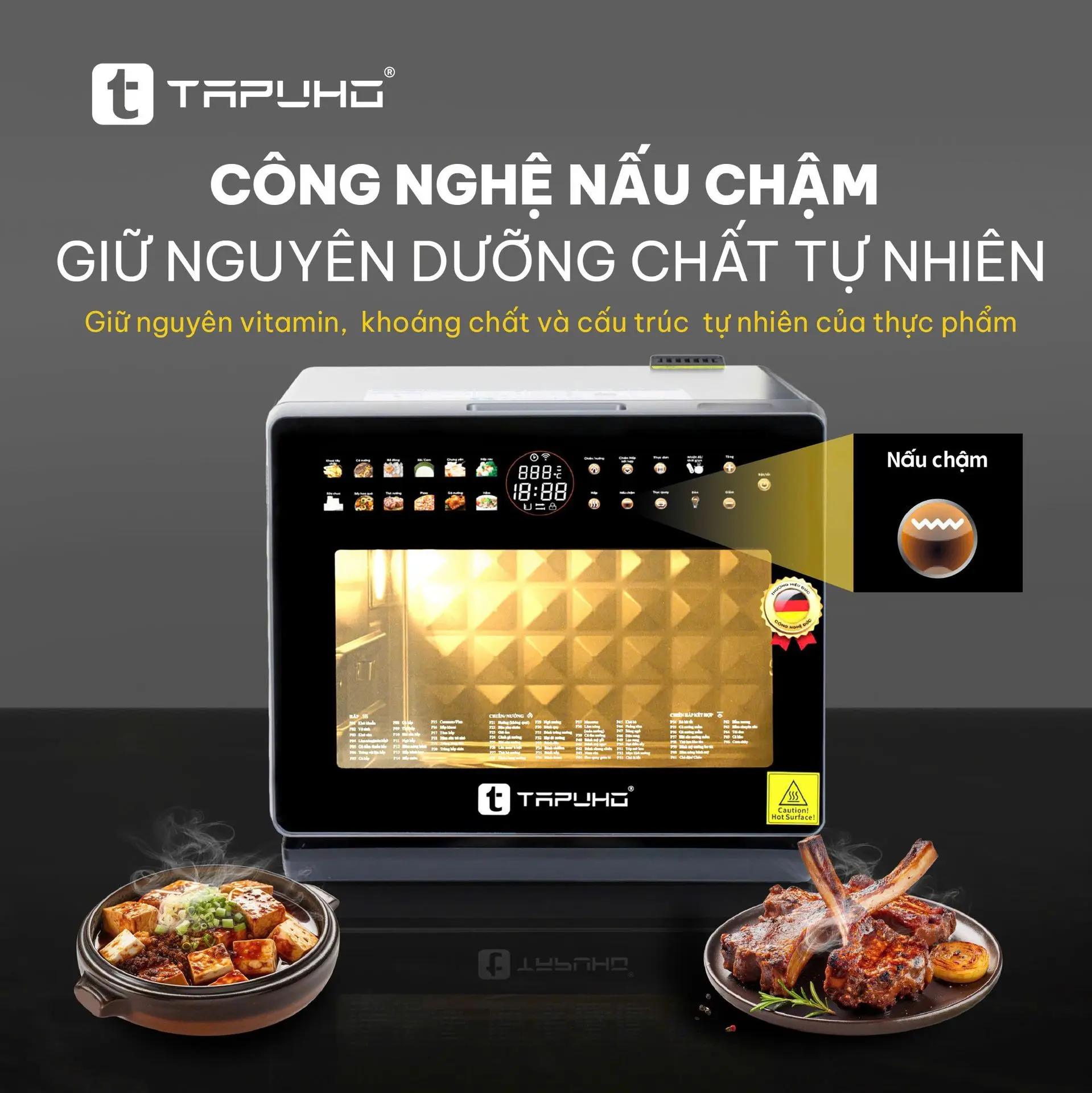 Tính năng nấu cơm / xôi này là kết quả của quá trình nghiên cứu tỉ mỉ từ đội ngũ kỹ sư TAPUHO nhằm điều chỉnh độ ẩm, hơi nước và nhiệt độ sao cho phù hợp nhất với thói quen ẩm thực Việt Nam – nơi mỗi bữa cơm ngon là linh hồn của gia đình.