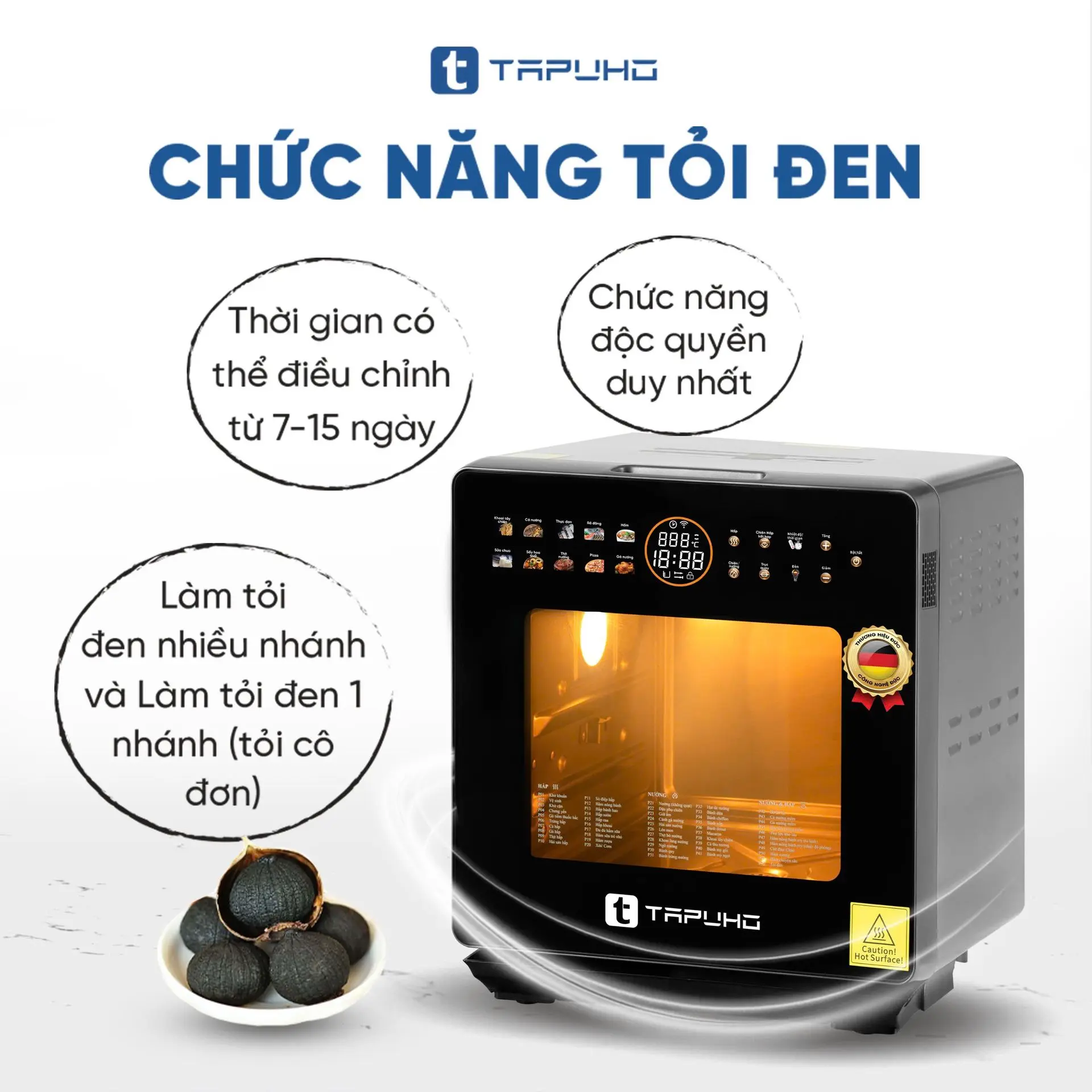 + Tỏi đen (P52): là chức năng độc nhất vô nhị trên thị trường và chỉ có TAPUHO TSF16 COLOR PLUS. Chức năng này được TAPUHO phát triển dựa trên nhu cầu thực tế của khách hàng sau khi khách hàng trải nghiệm sản phẩm đàn anh TAPUHO TSF16. Người dùng không cần phải tốn tiền mua thêm thiết bị riêng làm tỏi đen nữa. Đặc biệt chức năng này có thể điều chỉnh thời gian từ 8 ngày đến 15 ngày để phù hợp với các loại tỏi đen: Tỏi nhiều nhánh nhỏ hoặc tỏi 1 nhánh hay còn gọi là tỏi cô đơn.
