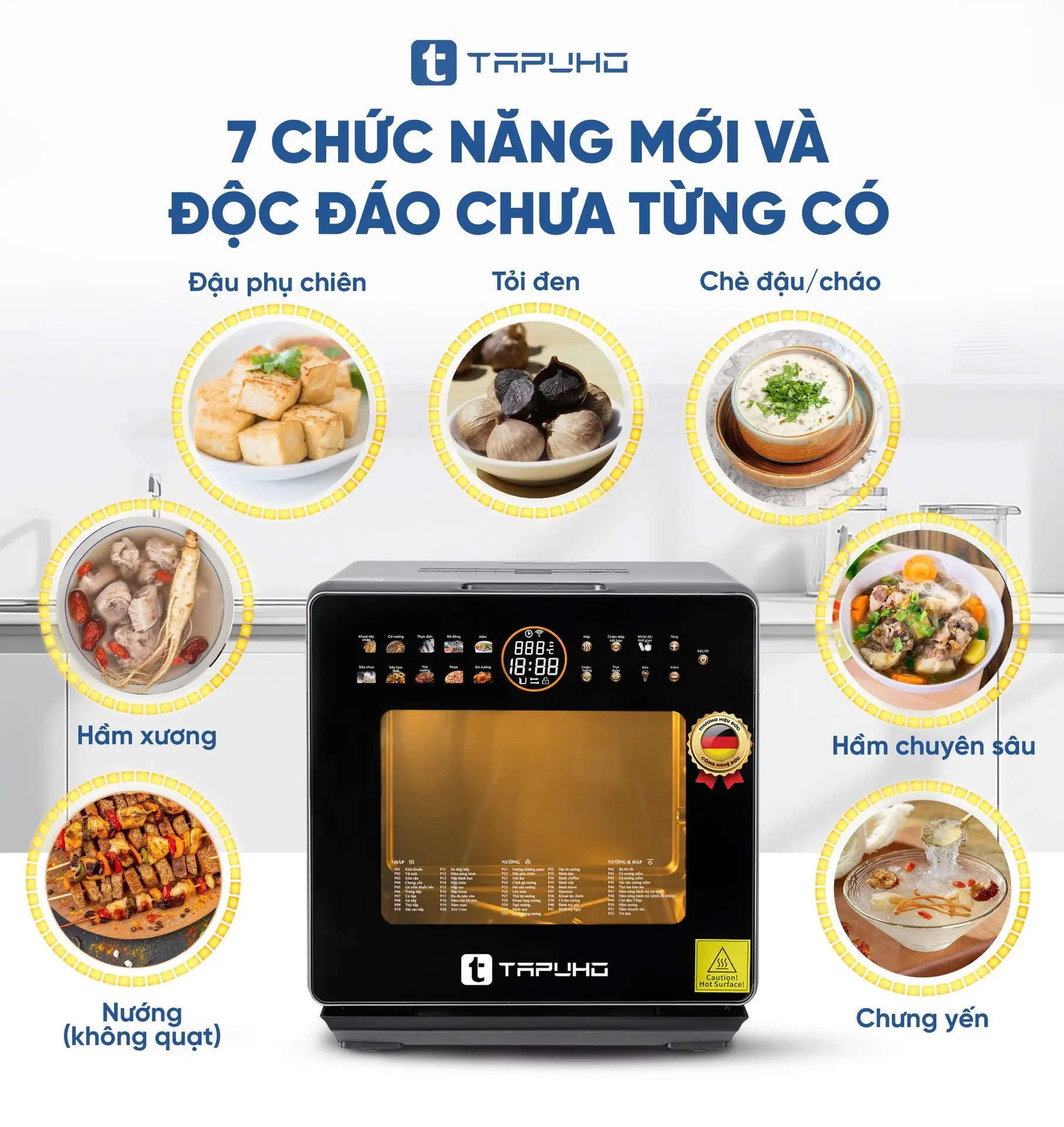 Ở phiên bản trước TAPUHO TSF16 đã làm bùng nổ thị trường nồi chiên hơi nước tại Việt Nam với chức năng HẦM độc nhất vô nhị, là chức năng có thể làm các món ăn cần ninh nhừ với cơ chế đặc biệt; đặc biệt có thể vừa làm các món nướng vừa làm các món hầm nhừ tại cùng một thời điểm.