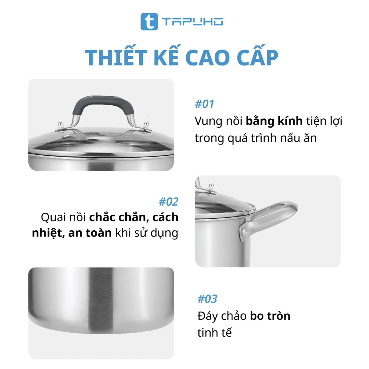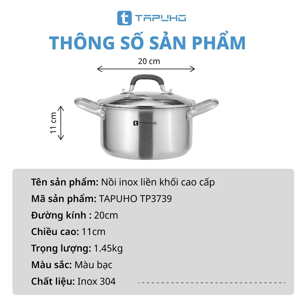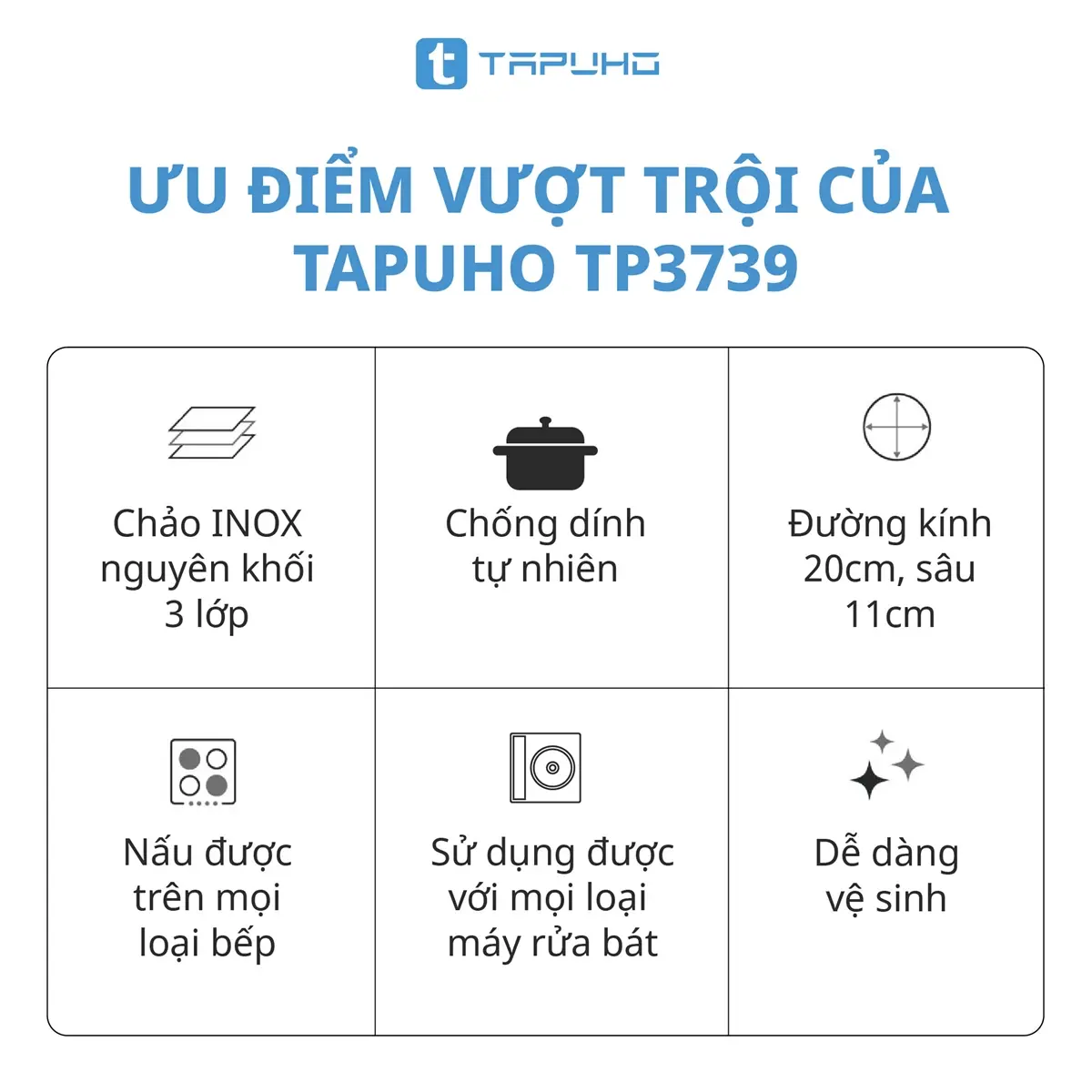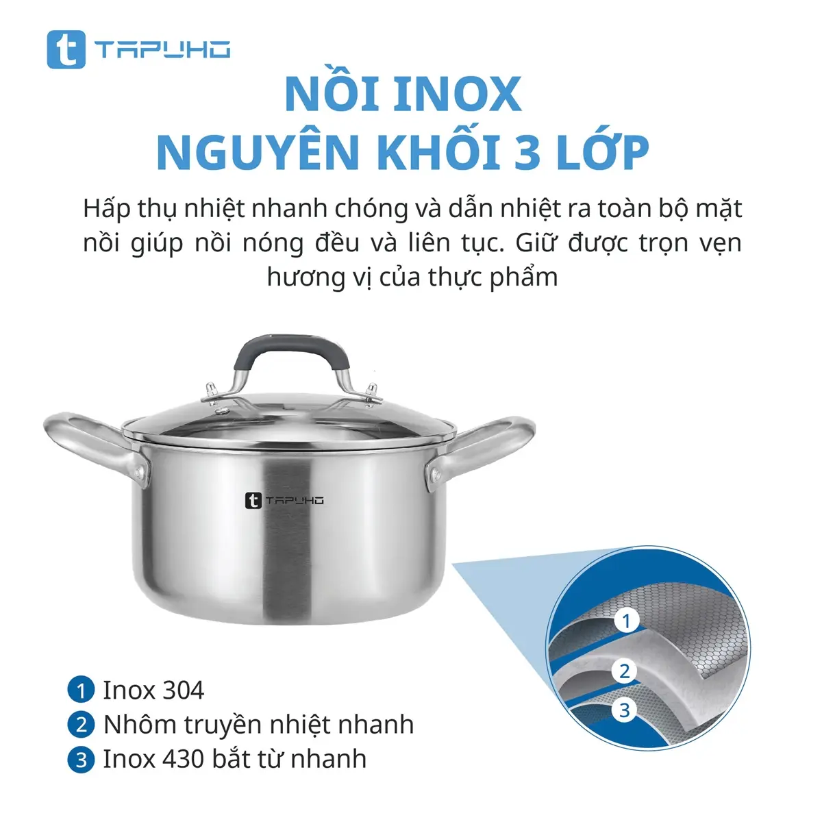 Nồi Inox Cao cấp 3 lớp liền khối TAPUHO TP3739