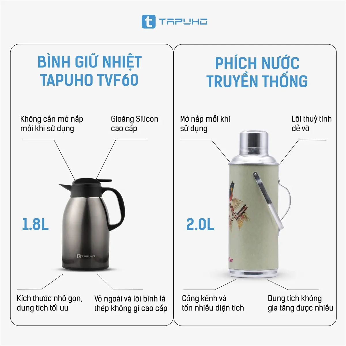 - Không để cạnh nguồn nhiệt, tránh ảnh hưởng đến việc giữ nhiệt.