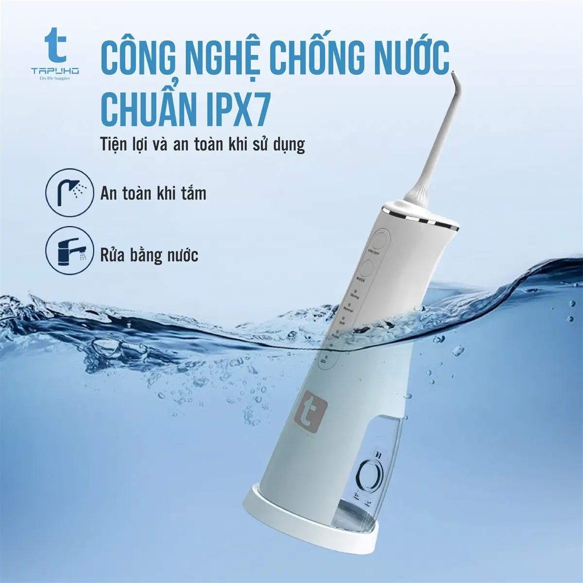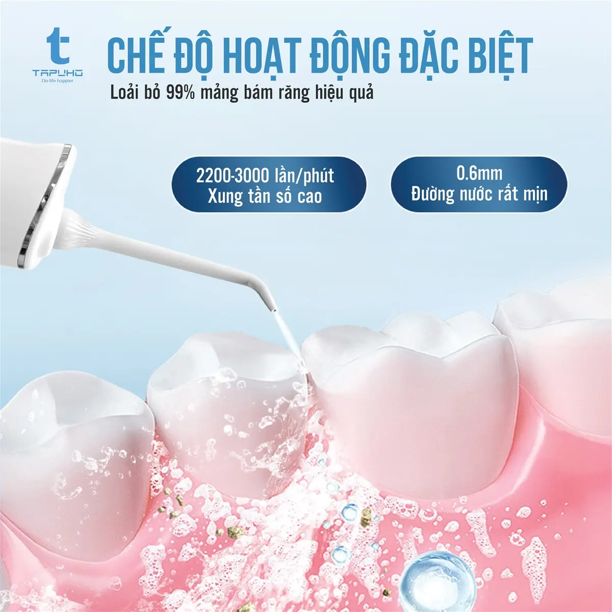 Máy tăm nước là một thiết bị giúp làm sạch răng miệng bằng nước. Tăm nước sử dụng lực nước của các đầu xịt, bắn ra một tia nước nhỏ để bạn điều chỉnh tia nước này vào kẽ răng và nướu để lấy hết thức ăn thừa và mảng bám ở kẽ răng, nướu và khoang miệng, giúp ngăn chặn hình thành cao răng và các vi khuẩn gây sâu răng. Tia nước xịt ra rất dịu nhẹ nên ít có nguy cơ gây chảy máu nướu khi sử dụng.