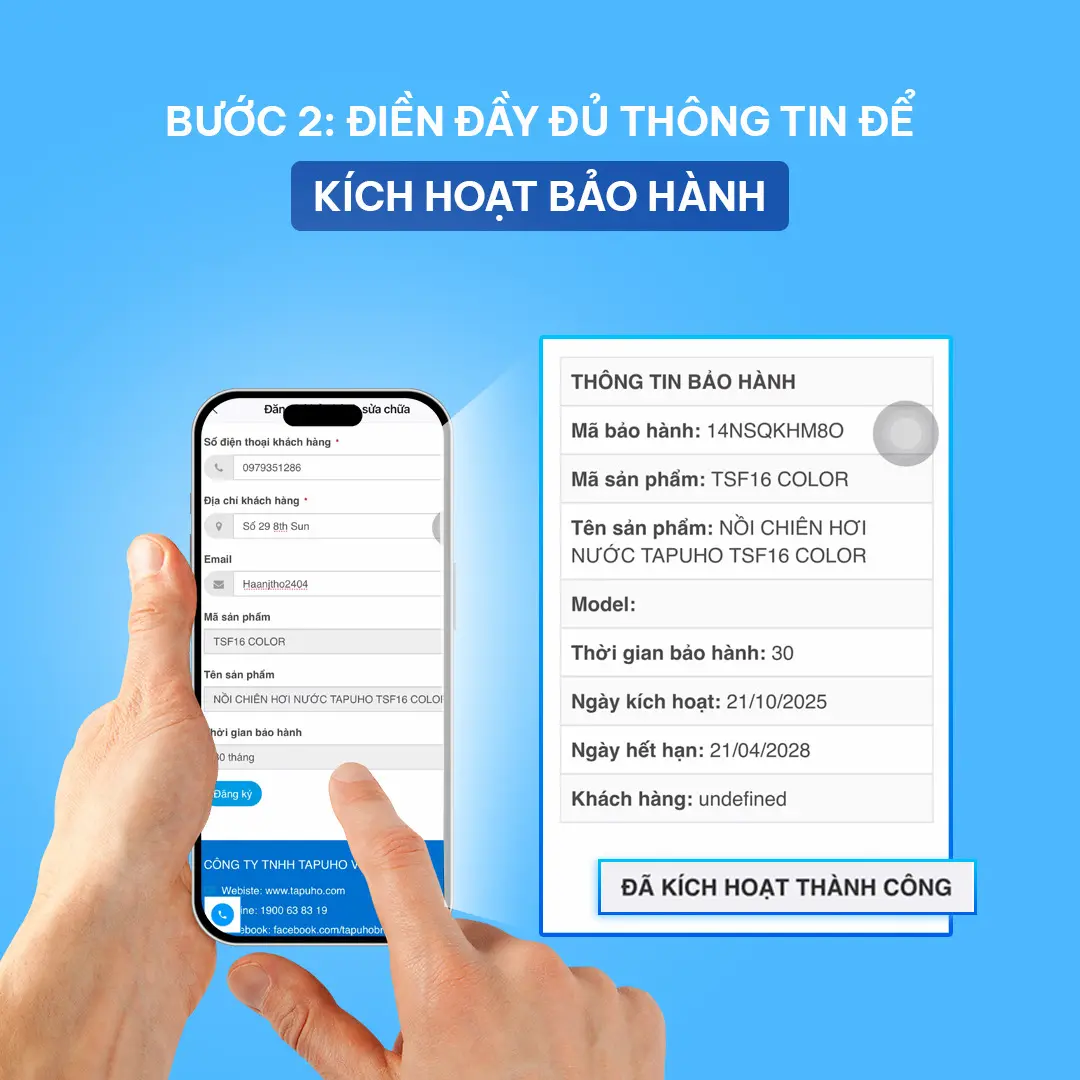 Để kích hoạt bảo hành cho sản phẩm TAPUHO, khách hàng chỉ cần thực hiện 3 bước đơn giản sau: